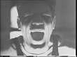 Abraham Simon 240-pound heavyweight tunes up for return bouts with Joe Louis / Simon sparring with partner / Simon knitting / close up of Simon laughing menacingly / view of Joe Louis in uniform running through Army camp / sign reads 'Sports Arena' / Louis in bathrobe entering arena / soldiers cheer / Louis putting head gear on / putting gloves on / Louis sparring in ring / Louis smiling and talking.