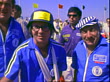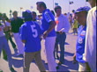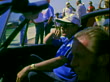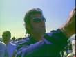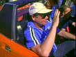 Actor GLENN FORD wearing white baseball cap, sunglasses, blue OMS jersey jacket, briefly smoking cigar while seated in passenger seat of red Porsche 914 sports coupe at Ontario Motor Speedway / Glenn Ford looks bored, not entirely thrilled to be at the ProAm event / comedian ARTE JOHNSON wearing famed German Army helmet and thick eye glasses, blue OMS honorary pit crew jacket while clowning around in pits (Arte Johnson's arms is in a sling) / actor KIRK DOUGLAS sporting shaggy hair, several days of facial growth, sunglasses, and blue OMS racetrack jersey while speaking into microphone, reading notes, audience seated in stands in BG / pit captain and actor JAMES GARNER wearing sunglasses, blue Goodyear racing jacket while standing, talking, pointing in pits. OMS Celebrity Pro-Am on August 09, 1970 in Ontario, California (Footage by Getty Images)