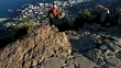 Luftaufnahme einer jungen Frau auf dem Gipfel des Lion's Head Mountain in Kapstadt, Südafrika.
