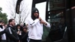 LONDON, ENGLAND - DECEMBER 29: (SLOW-MO) Alex Iwobi of Fulham arrives off the team bus ahead of the Premier League match between Fulham FC and AFC Bournemouth at Craven Cottage on December 29, 2024 in London, England. (Footage by Ryan Pierse/Getty Images)