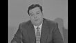 Title card: 'An Important Message on Brotherhood' superimposed over comedian Jackie Gleason seated at desk / zoom in to MS Gleason seated at desk, holding a cigarette; SOT Gleason: 'There are forces seeking to divide our house, our nation. They have skillful ways and techniques. They know how to pit race against race, class against class, religion against religion, and brother against brother. If a house be divided, it cannot stand. That is as true today as it was 19 centuries ago when it was first said' / SOT Gleason encourages those watching to enroll in the Crusade for Brotherhood and tells them how to do so / CU Gleason with cigarette smoke rising at his right; SOT Gleason quotes US President Dwight Eisenhower: 'Without brotherhood we will soon cease to be a great nation; urges joining