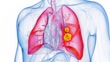 Animation of Male Anatomy - Lung Cancer. Plain White Background. Professional Studio Lighting