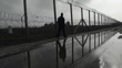 Armed members of the Hungarian military patrol by the razor wired topped security fence on the Hungarian-Serbian border near Roszke, Hungary, on Wednesday, Feb. 17, 2016, A 'State Border' sign sits beside a razor wired topped security fence, A razor wired topped security fence is reflected in a puddle