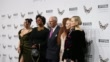 MILAN, ITALY - NOVEMBER 16: (SLOW-MO) (L-R) Ashley Graham, Precious Lee, Marco Tronchetti Provera, Emma Summerton, Lauren Wasser and Guinevere van Seenus attend the Calendario Pirelli 2023 Presentation at Pirelli HangarBicocca on November 16, 2022 in Milan, Italy. (Footage by Davide Lamazzi/Getty Images)