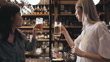 2 Asian Chinese women toasting at bar counter during happy hour after work - 4K Stock-Video