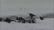 Bald eagle (Haliaeetus leucocephalus) and ravens (Corvus corax) feed on bison carcass in snow, Yellowstone, USA - HD Stock-Video