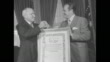 At the White House, Bob Hope receives scroll signed by GIs and generals for his entertainment of servicemen all over the world