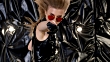 Brutales High Fashion blondes Model boxt in schwarzen Lederhandschuhen. Mode-Video. Zeitlupe. 4K 30fps ProRes 4444