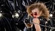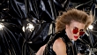Brutal aussehendes High-Fashion-Model, das in Metallketten festgehalten wurde. Mode-Video. Zeitlupe. 4K 30fps ProRes 4444