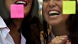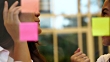 Zwei Geschäftsfrauen arbeiten gemeinsam an Wandglas