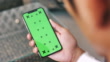 Chroma Key,Smart Phone,Men Businessman looks at smartphone green screen