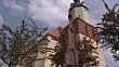 church St. George with monument in front of in Mansfeld, where Martin Luther has lived in his childhood