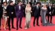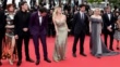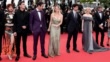 CANNES, FRANCE - MAY 22: (GIF) Clara Bretheau, Noham Edje, Sofiane Bennacer, Valeria Bruni Tedeschi, Louis Garrel, Nadia Tereszkiewcz and Micha Lescot attend the screening of "Forever Young (Les Amandiers)" during the 75th annual Cannes film festival at Palais des Festivals on May 22, 2022 in Cannes, France. (Photos by Gareth Cattermole/Getty Images)
