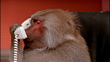 Close up baboon listening and making noise on telephone - HD Stock-Video
