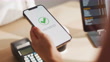 Nahaufnahme Kaffee bezahlen mit kontaktlosem Bezahlen, Mobile Anwendung bezahlen Bildschirm - 4K Stock-Video