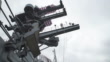 Communications tower aboard US Navy aircraft carrier, low angle - HD Stock-Video