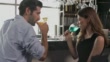 Verliebtes Paar mit einer guten Zeit zusammen und redet und trinkt Cocktails in einer Sky-Lounge und Bar in Bangkok - 4K Stock-Video