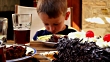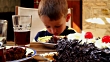 Niedliche kleine Kinder essen Schwarzwälder Kirschtorte - 4K Stock-Video