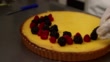Dessert-Koch dekoriert Zitronenpudding-Kuchen mit Beeren - 4K Stock-Video