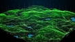Digital dark orange landscape particle. Futuristic flight through a digital line landscape, Abstract background. 3D Rendering.