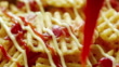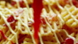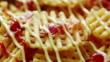 Drizzling ketchup on waffle fries - HD Stock-Video
