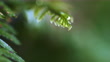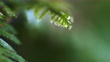 Zeitlupen-Nahaufnahme einer einzelnen Wassertröpfchen, die von einem Farnblatt in der Natur fällt. Gedreht in Slowenien.