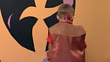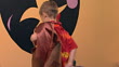 Elementary age boy putting on a Davie crocket outfit - HD Stock-Video
