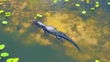 This clip features an alligator swimming in a pond below the Shark Valley Observation Tower within Everglades National Park in Florida. The 70-foot-tall tower provides panoramic views of the expansive sawgrass marsh and wildlife. A turtle and fish are also visible.