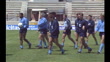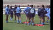 Bobby Robson (then England manager) on training pitch with England squad during 1990 World Cup
