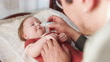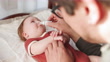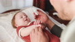 Vater gibt seinem kleinen Mädchen Nasentropfen - 4K Stock-Video
