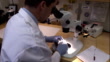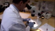 A forensic scientist examines a piece of bone with a microscope. - HD Stock-Video