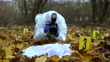 Leitender forensischer Wissenschaftler, der Fotos am Tatort macht. Videomaterial in 4K-Auflösung.