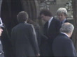 MS Phil Collins (Rock Singer) & wife arrive and Collins shakes and hugs man outside church