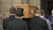 Television: Funeral of 'Coronation Street' actress Liz Dawn; ENGLAND: Greater Manchester: Salford: Salford Cathedral:EXTPallbearers carrying coffin towards cathedral entrance at funeral of actor Liz Dawn (who played character 'Vera Duckworth')Coronation Street actors Michael Le Vell and Sally Dynevor arriving for funeralUnidentified actor arrivingKen Morley (Actor) arrival/Michael Le Vell ('Kevin Webster') interview SOT/ Samia Longchambon ('Maria Connor') interview SOT/Funeral order of service pamphlet showing cover image of Liz DawnGV Salford Cathedral
