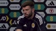 GARMISCH-PARTENKIRCHEN, GERMANY - JUNE 17: Grant Hanley, Scotland defender, reacts after their 1-5 loss to Germany at the UEFA Euro 2024 opener and ahead of their Group A match against Switzerland during Press Conference at Garmisch Olympia Stadium on June 17, 2024 in Garmisch-Partenkirchen, Germany. (Footage by Niche Sport Media via Getty Images)