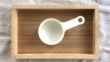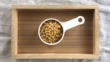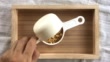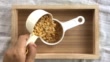 Cuisine and Food, Hand Pouring Cross Section of Dried Soybeans or Edamame Seeds in A Measuring Spoon.