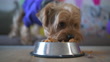 Glücklicher Yorkshire-Terrier isst seinen Geburtstagskuchen