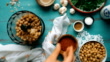 Wie macht man Hummus? (Overhead Shot) - Hinzufügen von Salz - 4K Stock-Video