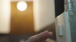 Die menschliche Hand schaltet den Lichtschalter in einer rauen Wandeinstellung aus und ein. - 4K Stock-Video