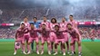 HARRISON, NEW JERSEY - JULY 19: (SLOW-MO) Inter Miami CF players Tadeo Allende #21, Rocco Ríos Novo #34, Sergio Busquets #5, Maximiliano Falcon #37, Gonzalo Luján #2, Federico Redondo #55, Lionel Messi #10, Luis Suarez #9, Marcelo Weigandt #57, Telasco Segovia #8, Jordi Alba #18 pose for a group photo during the Major League Soccer match between New York Red Bulls and Inter Miami CF at Sports Illustrated Stadium on July 19, 2025 in Harrison, New Jersey. (Footage by Brian Craig/Getty Images)