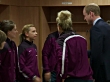 CLEAN: interior shots of Prince William, Duke of Cambridge meeting the England Women's Football Team at St Georges Park on May 20, 2015 in Burton-upon-Trent, United Kingdom. **Please note there is some incidental background music in this clip, which may require additional clearing**