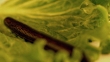 Makro von Blutegel auf dem grünen Blatt, Studio-Shooting