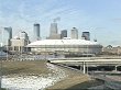 Traffic moves on a highway near the Hubert Humphrey Metrodome in Minneapolis.