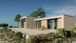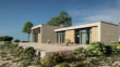 3D-Rendering des modernen Strandhaus-Äußeren. 4K / UHD / 3840x2160 Pixel.