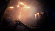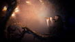 Fantasy-Szene. Ein Mädchen spielt Zauberflöte und verzauberte, leuchtende Schmetterlinge tanzen um sie herum. Ein magischer Moment, der auf die künstlerischste Art und Weise geschaffen wurde.