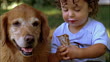 CU, USA, Maine, Yarmouth, Boy (2-3) sharing ice cream with Golden Retriever - HD Stock-Video