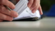 Männlicher Arm im Anzug bieten Versicherungsform abgeschnitten, um Pad - 4K Stock-Video