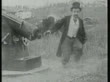 B/W 1915 man (Chester Conklin) on grass near cannon standing up + stumbling around / short - Stock-Video