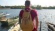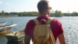 Man with tattoos walking in slow motion on a sunny day at a pier in Cuba - 4K Stock-Video