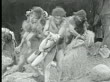 1914 B/W Medium shot Violent cavemen attacking boys and carrying cavewomen away - Stock-Video